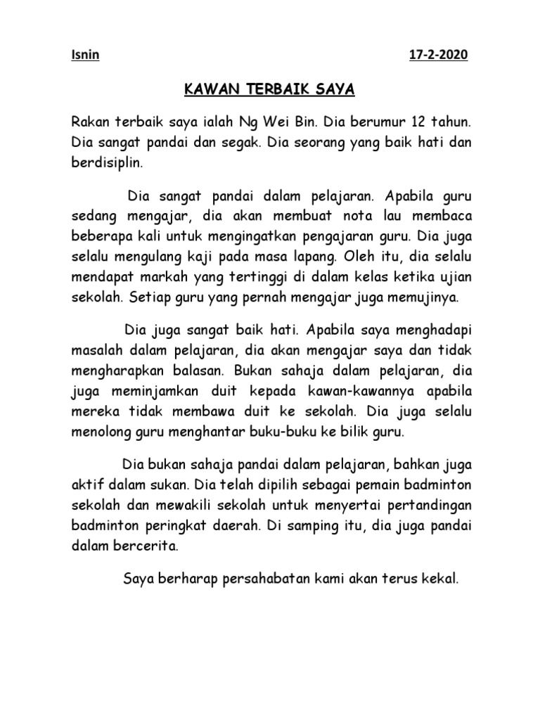 Pemikiran kritis buku teks sejarah tingkatan 3 kssm bab 1 1. Isi a siva berharap agar kejayaannya memberi semangat kepada pelajar. Contoh Karangan Upsr Bahasa Melayu Senarai Tahun 6.